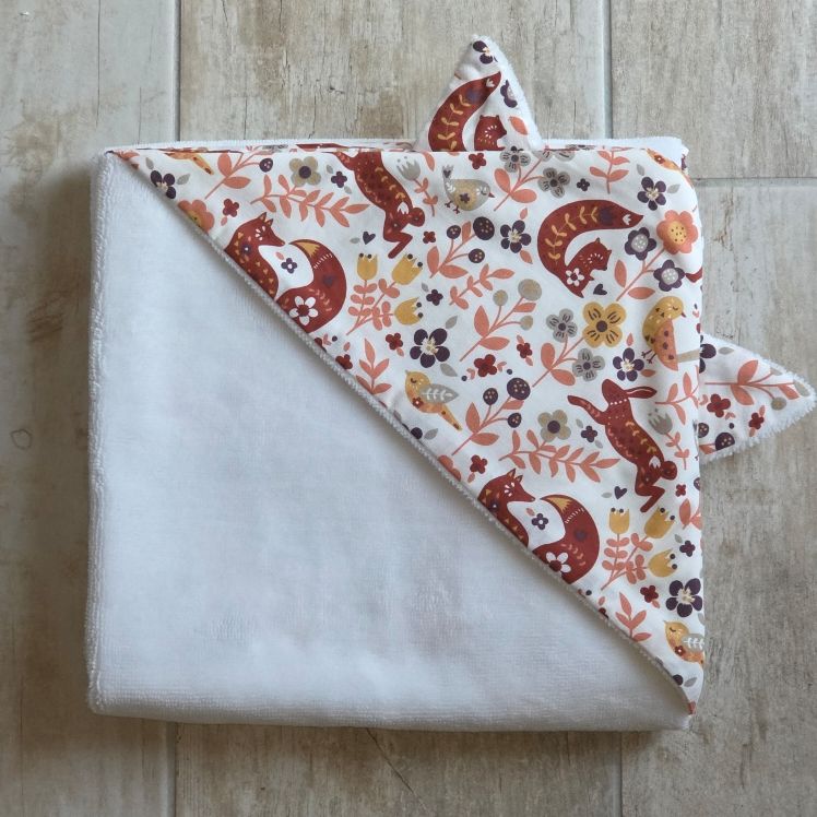 Cape de bain avec oreilles renard doublée 80cm x 80 cm