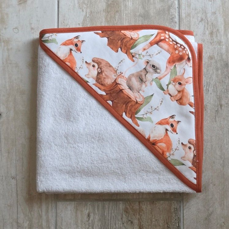 Cape de bain motif biche/forêts 80cm x 80 cm, enveloppez bébé de douceur après le bain grâce à cette cape de bain.