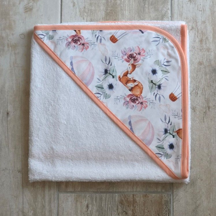 Cape de bain motif chevreuil et ballons 80cm x 80 cm, enveloppez bébé de douceur après le bain grâce à cette cape de bain.