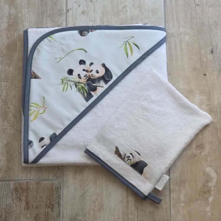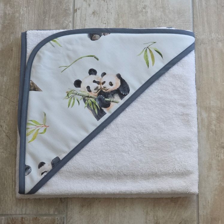 Cape de bain motif panda 80cm x 80 cm, enveloppez bébé de douceur après le bain grâce à cette cape de bain.
