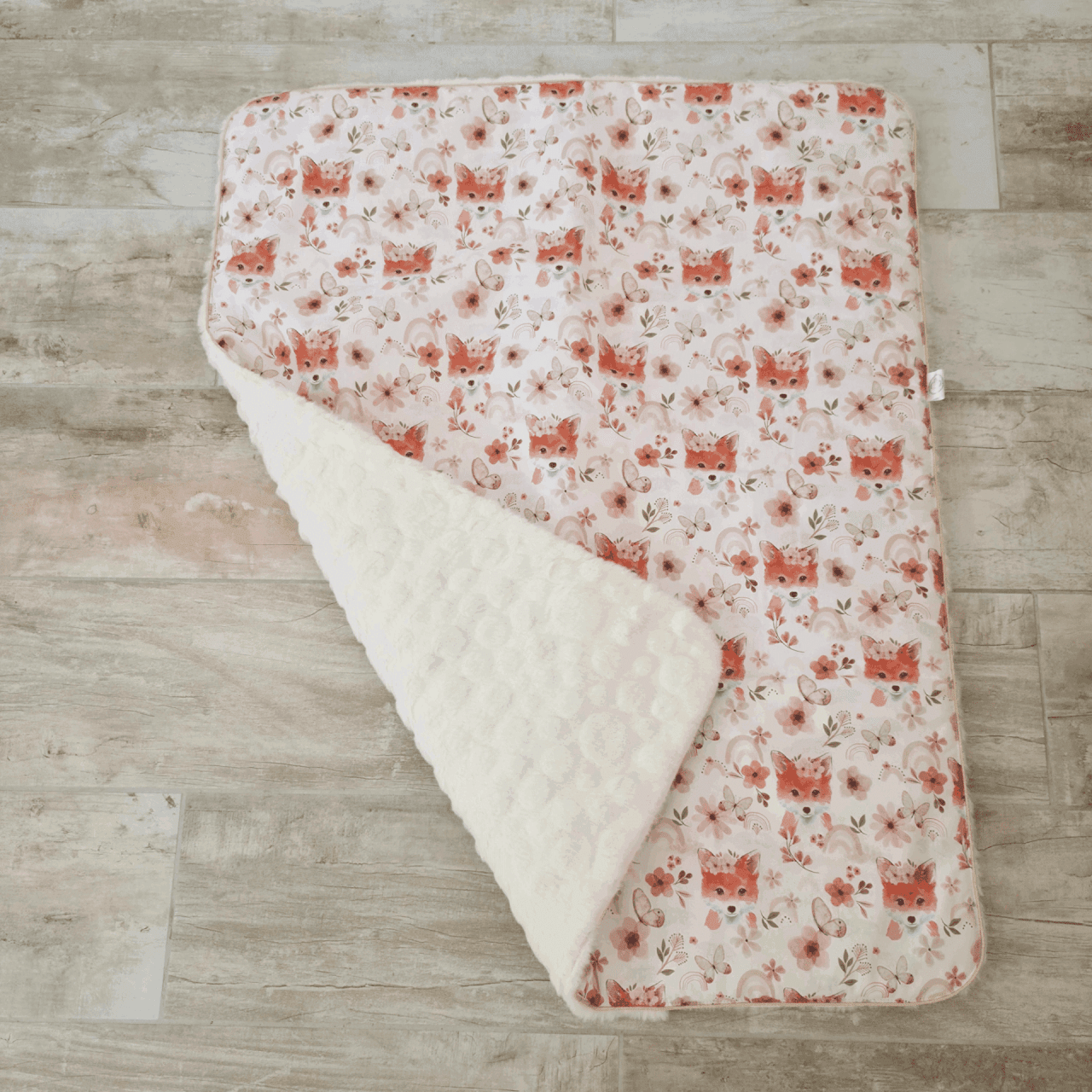 Bavoir en coton doux, motif renard et fleurs. Pratique, absorbant et original, idéal comme cadeau de naissance tendance ou pour le trousseau de bébé.