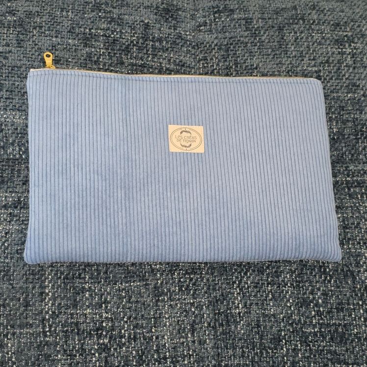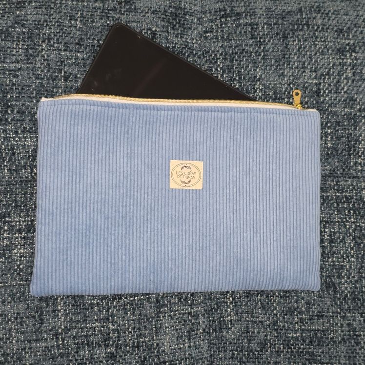 Housse en velours côtelé avec fermeture éclair dorée. Élégante et pratique, idéale pour protéger tablette, liseuse ou carnet.